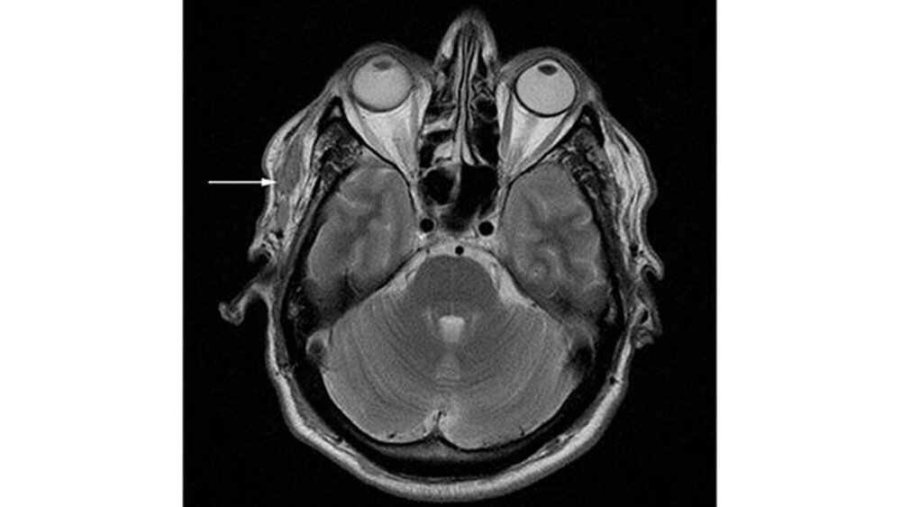 Anamnestische Hinweise für das Vorliegen einer B-Symptomatik wie Fieber, Nachtschweiß oder Gewichtsverlust lagen nicht vor. Die klinische Untersuchung zeigte keine Entzündungszeichen oder Einschränkungen der Motorik beziehungsweise Sensorik im Gesichtsbereich. Der palpatorisch derbe Befund war jedoch schlecht verschieblich zum umliegenden Gewebe.