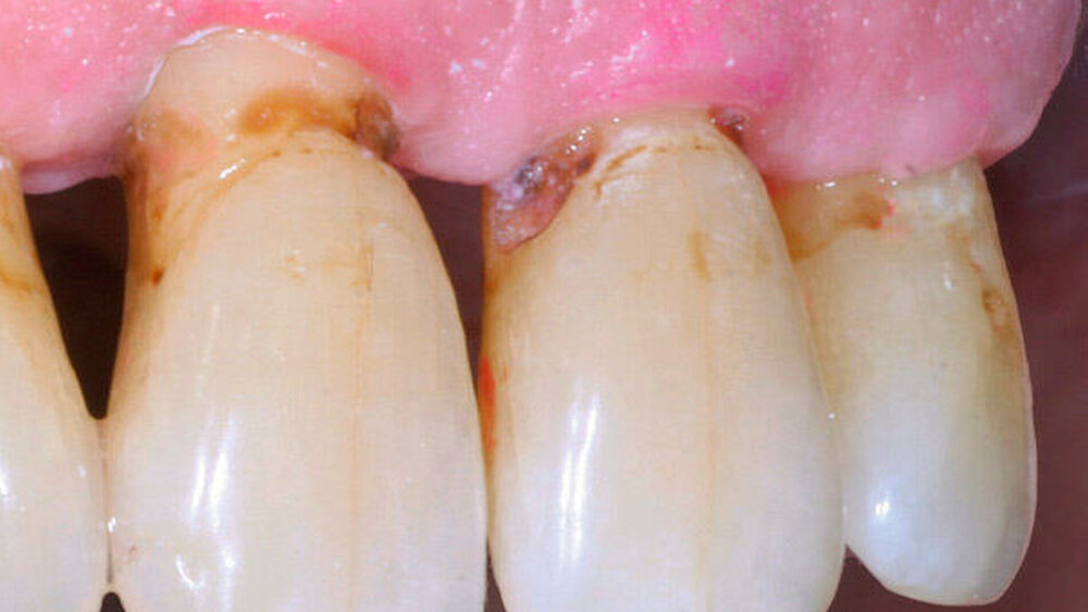In der aktuellen Deutschen Mundgesundheitsstudie (DMS V) konnte gezeigt werden, dass insbesondere Zähne von pflegebedürftigen Senioren häufig Wurzelkaries aufweisen. Da Wurzelkariesläsionen in unzugänglichen Bereichen wie Approximalräumen schwer zu therapieren sind (Abbildung 2) und die Therapieoptionen bei pflegebedürftigen Patienten meist eingeschränkt sind, ist es von großer Bedeutung, der Entstehung von Wurzelkaries bei Senioren vorzubeugen.