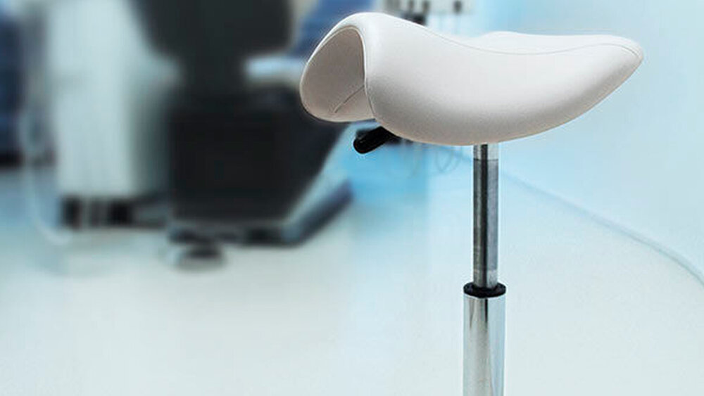 Im Vergleich zum Reitsattel beruht die Verwendung eines sattelförmigen Sitzes auf einem Arbeitsstuhl in der Zahnarztpraxis auf einem anderen Prinzip. Abgesehen von der dämpfenden Federung des Gaskolbens beim Hinsetzen und der Weichheit der Polsterung bildet der Arbeitsstuhl eine statische Basis, die nicht mit dem Sitzen auf einem Reitsattel auf einem sich bewegenden Pferd verglichen werden kann. Der statische Arbeitsstuhl ist für die Behandlung eine absolute Voraussetzung, um präzise und erfolgreich arbeiten zu können.