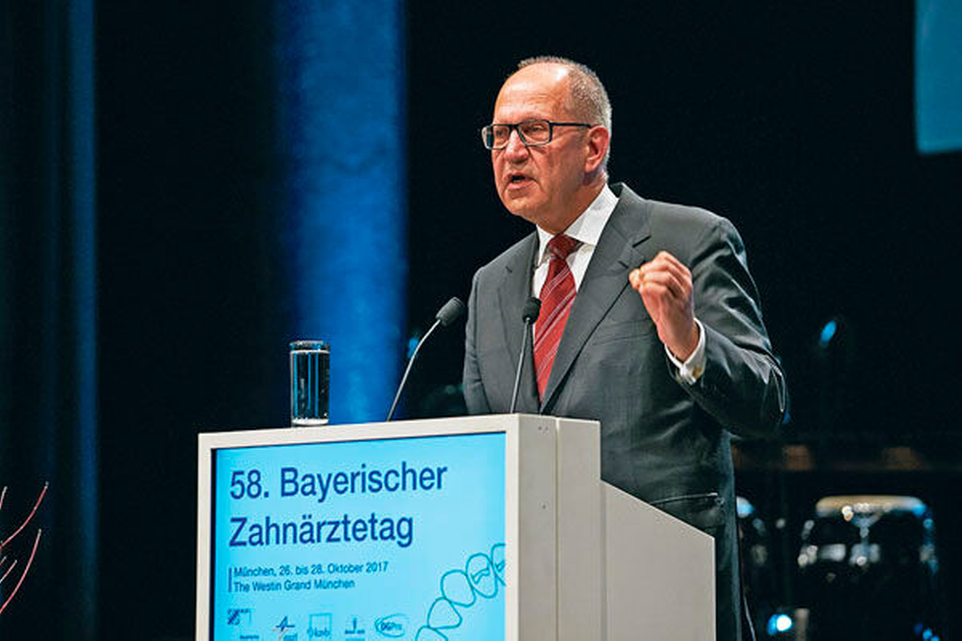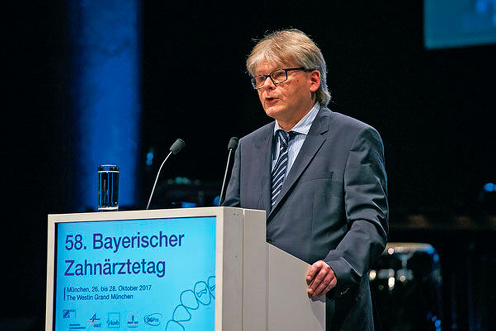 Um dann als erstes auf die Novelle der zahnärztlichen Approbationsordnung, kurz ZApprO, zu kommen – für ihn ist es „ein Trauerspiel“, dass nur die Länder Bayern und Baden-Württemberg für die Novellierung der zahnmedizinischen Ausbildung gestimmt haben, deren Struktur noch aus einer Zeit stammt, als Robert Lembke 1955 in Schwarz-Weiß zum ersten Mal mit „Was bin ich?“ über die Bildschirme flimmerte. Es sei doch ein „Treppenwitz“, dass es in Deutschland für immer exotischere Studiengänge Geld gebe, bei denen hinterher noch nicht einmal Arbeitsplätze in Aussicht stünden. Dagegen bringen die Zahnmediziner in Bayern allein in 2017 mehr als 3.000 junge Menschen in eine Ausbildung. Trotz immer neuer Belastungen der Praxen durch die Vorgaben aus der Politik – wie zum Beispiel Brandschutz- und Datenschutzbeauftragte. Berger: „Die zahnärztliche Selbstverwaltung lebt und hat Zukunft. Sie ist keine alte Tante.“ An dieser Stelle sei ein norddeutsch angehauchter Einschub erlaubt: Im Unterschied zur alten Tante ist die tote Tante eine äußerst schmackhafte Kombination aus heißem Kakao, ordentlich Rum und dicker Sahnehaube, an der man Gefallen finden kann – hätte sie doch nur etwas weniger Kalorien.