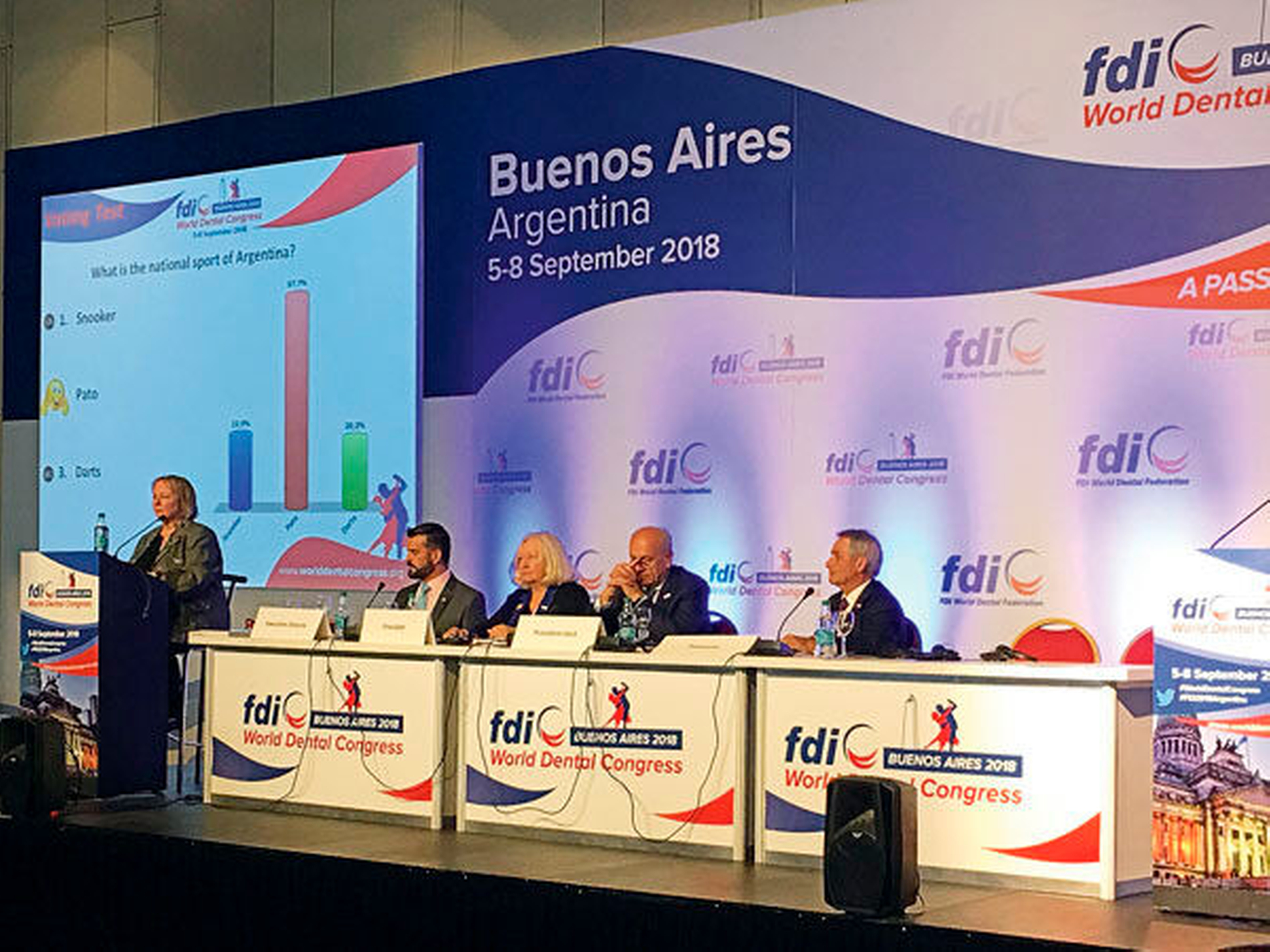 Während sich der Kongress traditionell mit allen Disziplinen der Zahnheilkunde beschäftigt und dabei die Prophylaxe besonders fokussiert, geht es in den gesundheitspolitisch geprägten Gremien der FDI um die Mundgesundheit aller Menschen und insbesondere um die (zahn)medizinisch unterversorgte Weltbevölkerung. Hier werden, analog zur WHO, die weltweit brennenden zahnärztlichen Themen diskutiert und Positionen verabschiedet. Das FDI-Strategieprogramm 2018–2021 wurde bereits beim letztjährigen Weltkongress in Madrid auf den Weg gebracht und jetzt in Buenos Aires konkretisiert. Was muss unter zahnmedizinischen Gesichtspunkten gefordert und getan werden, um die globalen Gesundheitsprobleme in den Griff zu bekommen? Zunehmende Antibiotika-Resistenzen, zunehmender Zuckerkonsum und vor allem die Konsequenzen, die globale Flucht- und Migrationsbewegungen auf den Gesundheitszustand der Betroffenen und damit auch auf Gesundheitssysteme haben, standen dabei im Zentrum der Diskussionen.