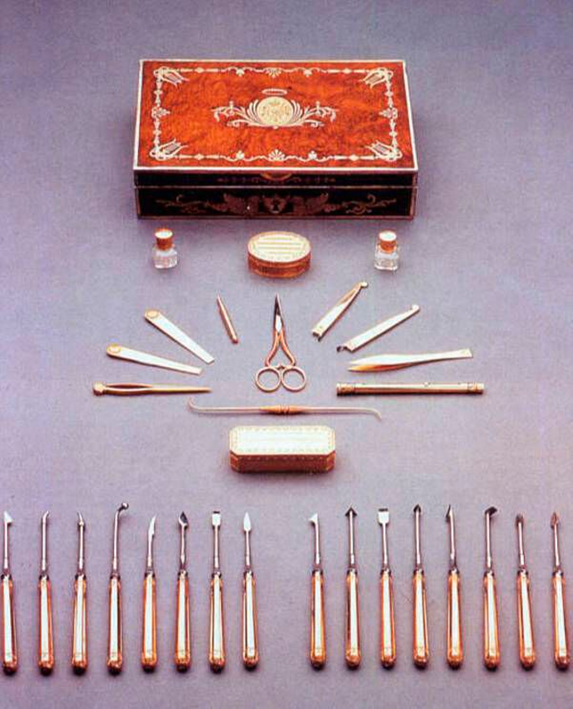 Napoleon I. legte großen Wert auf gute und gepflegte Zähne. Jean-Joseph Dubois-Foucou (1748–1830) wurde 1805 zum Leibzahnarzt des Kaisers ernannt. Der Kaiser absolvierte eine gründliche tägliche Zahnreinigung mit Zahnbürste, Zungenschaber und Mundspülung. Sein Zahnarzt benutzte die Instrumente des Nécessaire dentaire für die Entfernung von Zahnstein oder die Füllung von Zähnen.
