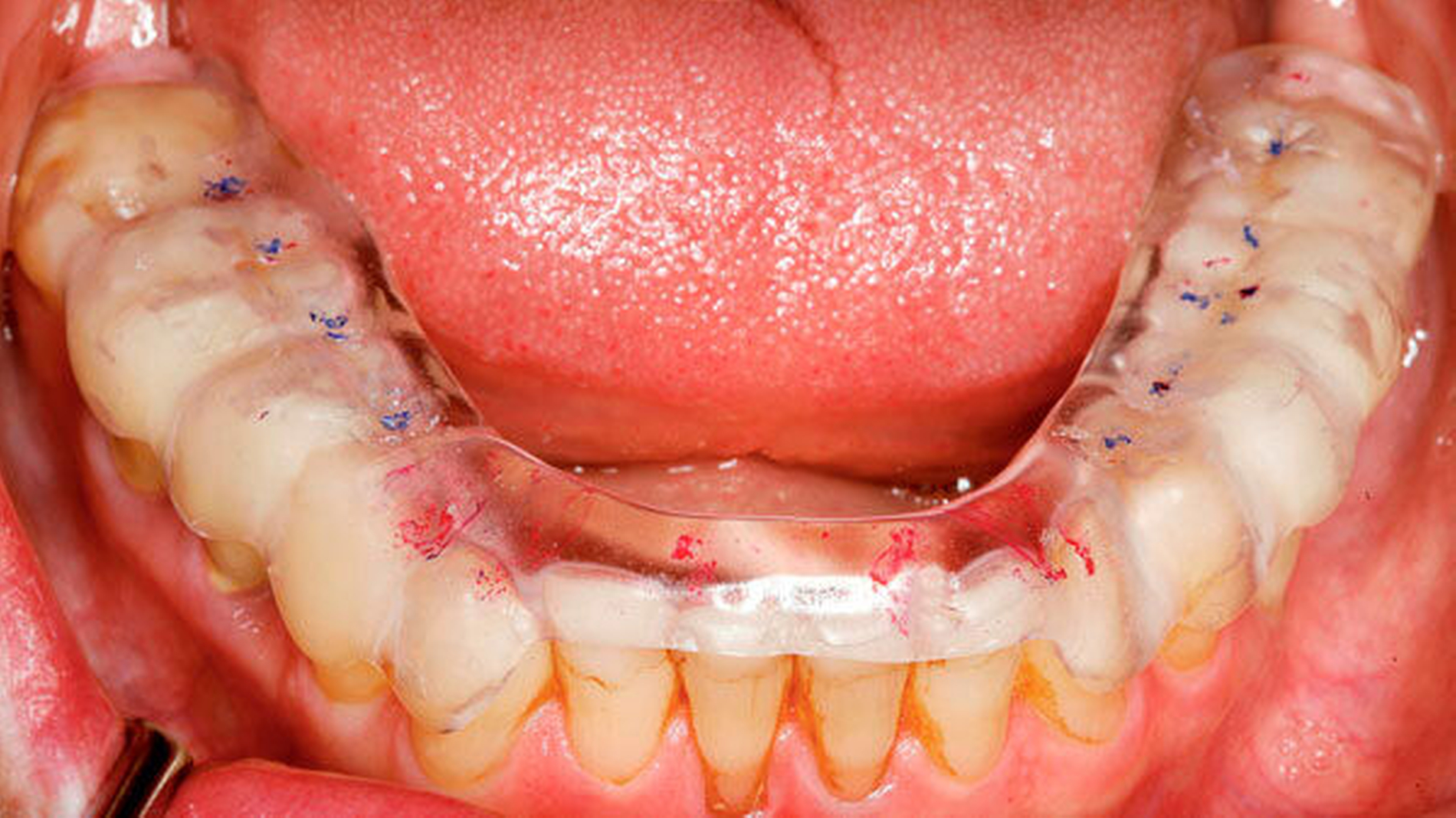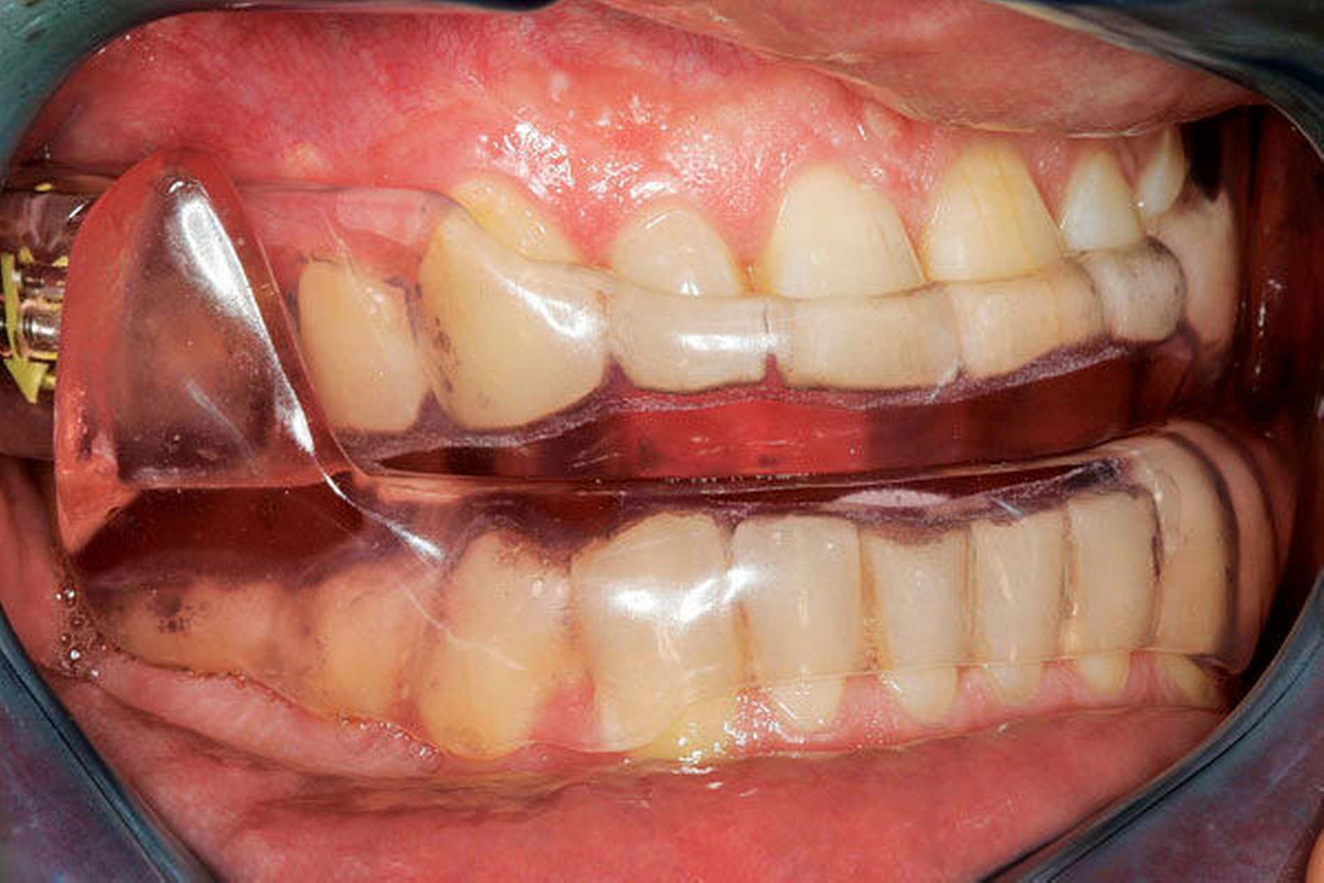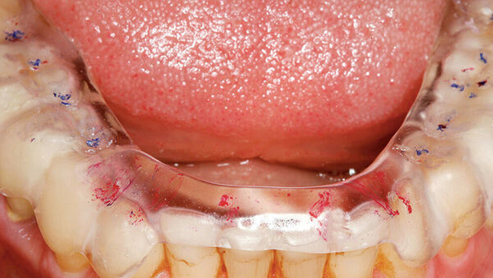 Nach der prothetischen Rehabilitation sollte bei Schlafbruxismus eine Schutzschiene eingesetzt werden.