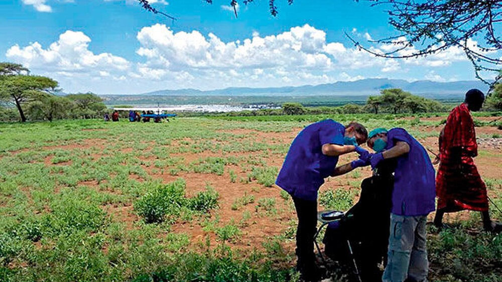 Mitte der ersten Woche mieteten wir schließlich einen Jeep und reisten in die Massai-Steppe. In dieser entlegenen Gegend, wo die Menschen allein für Wasser bis zu 60 Kilometer gehen müssen, liegt ein Zahnarztbesuch nicht nur gedanklich in weiter Ferne. Mit zwei Übersetzern an unserer Seite schickte uns Ole die nächsten vier Tage zu verschiedenen Dörfern in der Steppe, wo wir Füllungen legten und etliche Zähne zogen. Wir besuchten Schulen, um Mundhygiene zu demonstrieren, Zahnbürsten zu verteilen – und mussten uns auch bei allgemeinmedizinischen Fragen beweisen. Am Ende dieser intensiven Zeit waren wir medizinisch gewappnet für die kommenden Wochen.