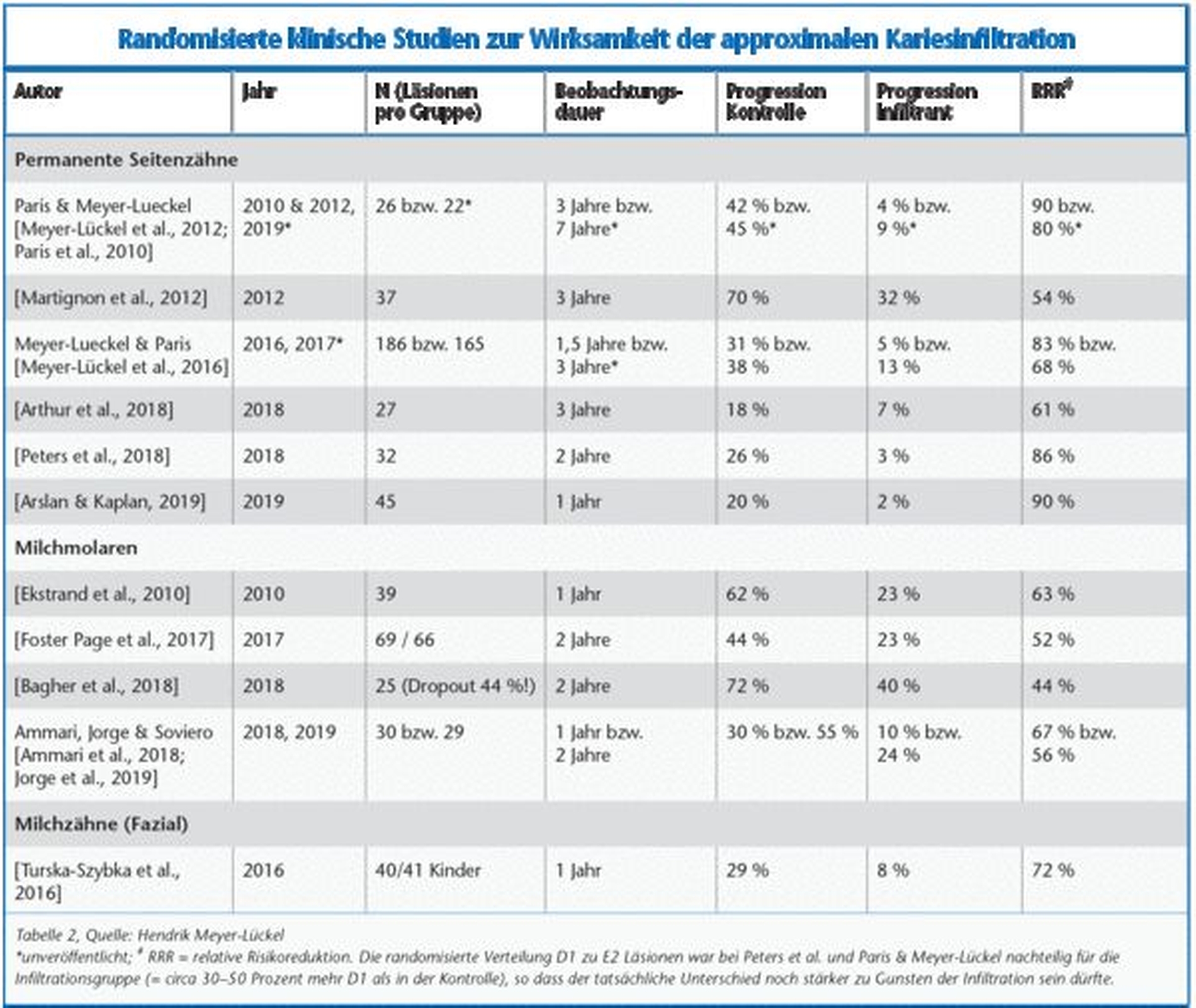 Meyer-Lückel, H., Paris, S., Schult, A.: Update Kariesinfiltration 2017. Zahnmedizin up2date, Thieme 2017 (Heft 3, Seiten 267–290).