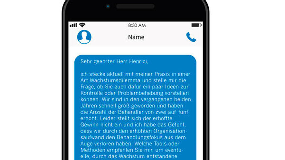 Meine Empfehlung besteht daher darin, sich auf die gelernten fachlichen Basics zu konzentrieren, um die Prozessqualität zurückzuerlangen, die es Ihrer Praxis überhaupt erst ermöglicht hat, zu wachsen. Mit Blick auf das notwendige Management gilt die Konzentration den wichtigsten Schlüsselzahlen (KPIs – key performance indicators) sowie einem harmonierenden und gut funktionierenden Team.