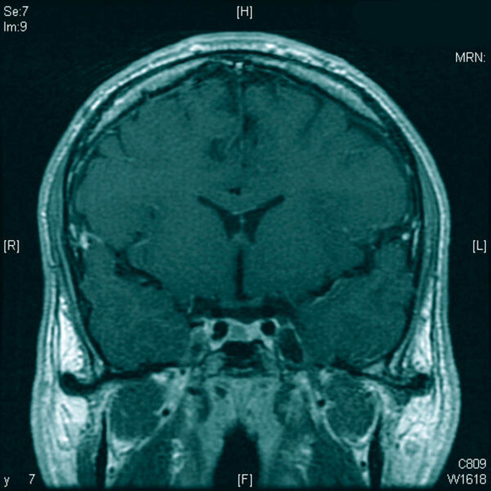 Aufgrund erhöhter Spiegel von STH und IGF-1 sowie eines in der MRT erkennbaren intrasellären Hypophysenadenoms (Abbildung 3) erfolgte im November 2015 eine endoskopische transsphenoidale Resektion des Hypophysenadenoms durch die Kollegen der Neurochirurgie.