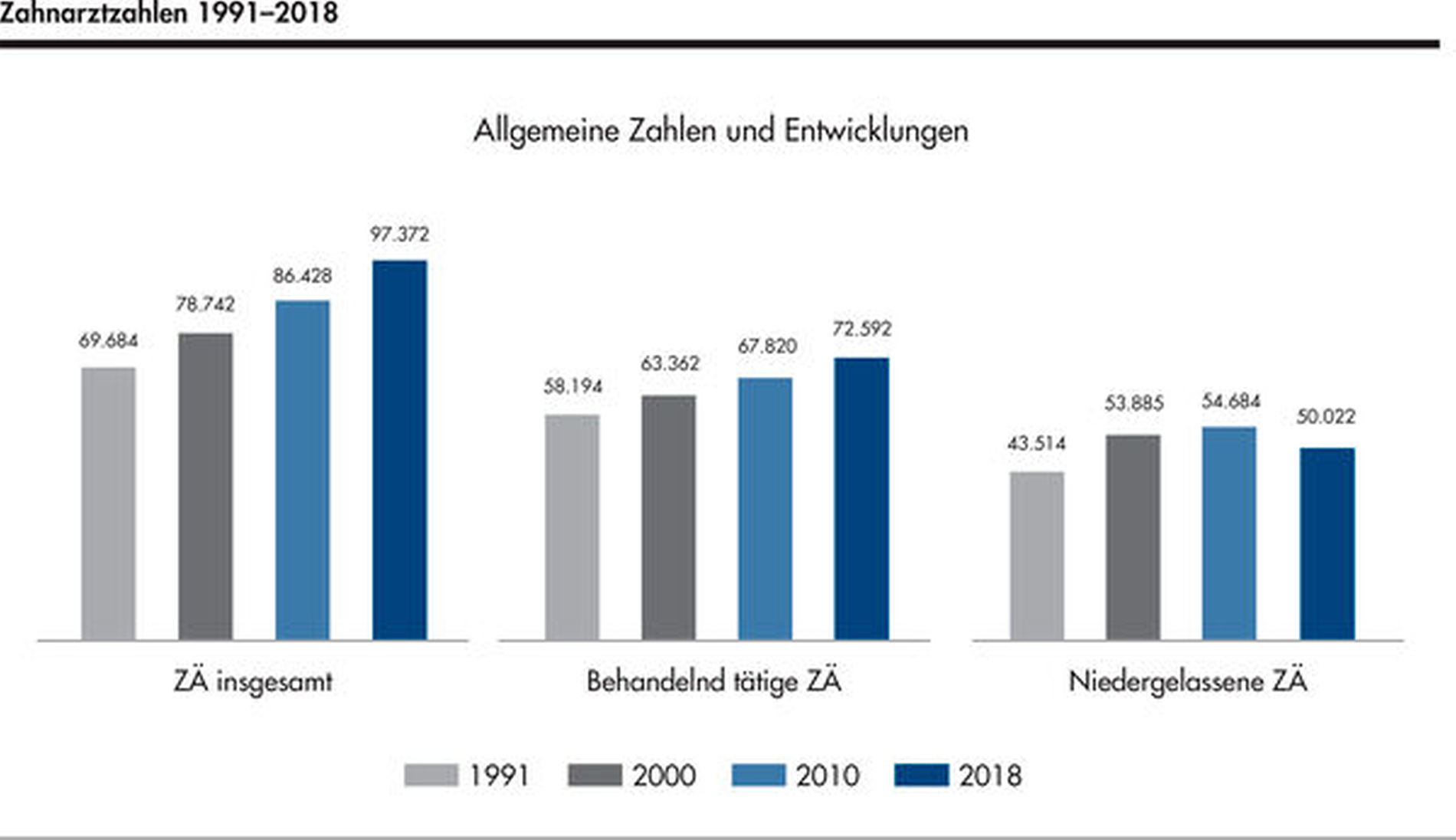 Behandelnd tätige Zahnärzte 2010 zu 2018: + 7,1 Prozent