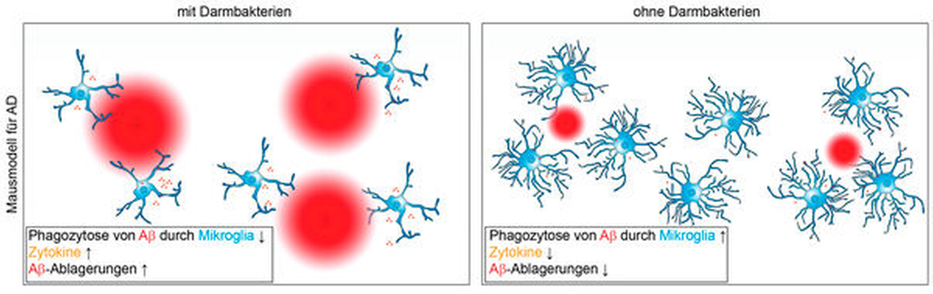 Dabei könnten sich Mikroglia als die residenten Gewebsmakrophagen im ZNS, die zum angeborenen Immunsystem gehören, als zelluläre Mediatoren zwischen Darm und Gehirn herausstellen. Bei nahezu jeder Erkrankung, die das Gehirn betrifft, sind Mikroglia in der Pathogenese beteiligt, wobei die molekularen Mechanismen, die die Aktivität und die Funktionen der Mikroglia unter Homöostase und im pathologischen Zustand steuern, bis heute nur zum Teil verstanden sind.