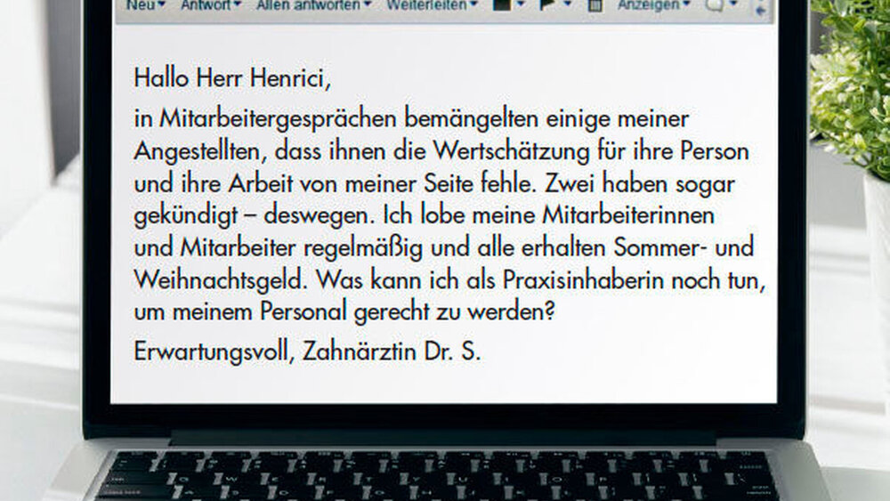 Echte Wertschätzung zeigt sich nicht in den aufgeführten Beispielen, sondern im Alltag. Oftmals habe ich Kenntnis davon erhalten, dass Praxisinhaberinnen und -inhaber ihrem Team wenig zutrauen – schlimmstenfalls herablassend über sie sprechen. Auch Zurechtweisungen oder gar Anschreien vor Patienten ist vielerorts gang und gäbe. Werden Mitarbeiterinnen gegenüber Patienten und Dritten als „Mädels“ bezeichnet, suggeriert man durch die Wortwahl Unmündigkeit und es wird dem Zuhörer vermittelt, dass das Personal auf Hilfe von Erwachsenen angewiesen ist. Wer seine Praxis in diesem Sinne führt, kann kostspieligste Unternehmungen, exklusive Weihnachtsessen und sehr großzügige Gehaltszahlungen nicht als Wertschätzung betrachten – bestenfalls als Schmerzensgeld.
