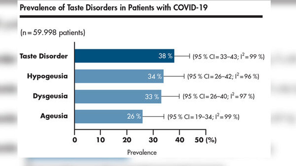 Geschmacksstörungen gelten als frühes Symptom einer SARS-CoV-2-Infektion. Die Gesamtprävalenz betrug 38 Prozent, wobei die Hypogeusie mit 34 Prozent, die Dysgeusie mit 33 Prozent und die Ageusie mit 26 Prozent beteiligt waren (Abbildung 1). Dabei wurden divergierende Prävalenzen in verschiedenen Ländern festgestellt, wobei „unterschiedliche Expressionen von ACE-2-Rezeptoren in verschiedenen Populationen“ ursächlich sein könnten [Amorim Dos Santos et al., 2021]. Jüngere seien möglicherweise häufiger von Geschmacksstörungen betroffen, aber die Datenlage sei zum aktuellen Zeitpunkt noch zu gering, um eindeutige Schlussfolgerungen zu ziehen.
