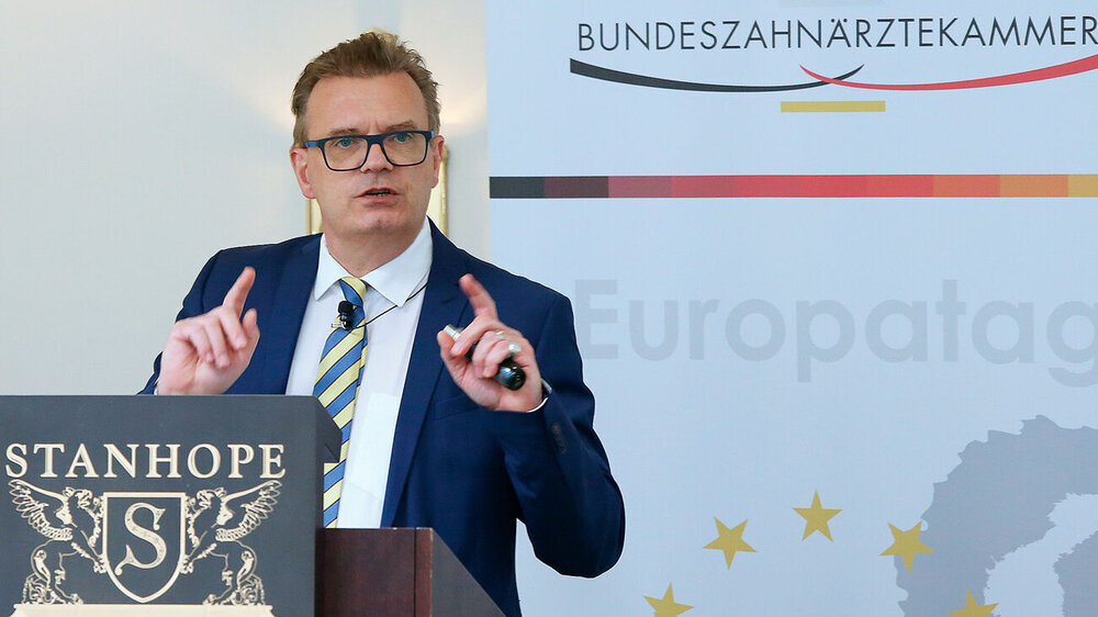 In seiner Begrüßung nahm BZÄK-Präsident Prof. Dr. Christoph Benz zunächst den deutschen Umgang mit der Digitalisierung aufs Korn. Der hiesige Hang, das Digitale „wie eine Science-Fiction“ zu behandeln, produziere regelmäßig Enttäuschungen – stattdessen würde es Deutschland guttun, etwas mehr Realitätssinn an den Tag zu legen und flexibler an den Möglichkeiten der Technik entlang zu denken, forderte Benz. Die Meilensteine der digitalen Entwicklung seien nicht die Umsetzung von Science-Fiction, sondern „eine Evolution der Realität und vielleicht gerade deswegen erfolgreich“ gewesen.