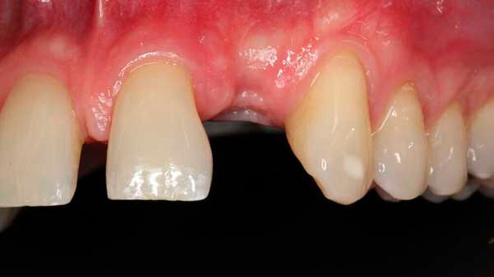 Die Allgemeinanamnese des Patienten war unauffällig. Eine Medikamenteneinnahme oder das Vorliegen von Allergien wurden verneint. Der Wunsch des Patienten war eine implantologische Lösung für den fehlenden Zahn 22 (Abbildung 1). Eine Brückenversorgung sollte, wenn möglich, vermieden werden.