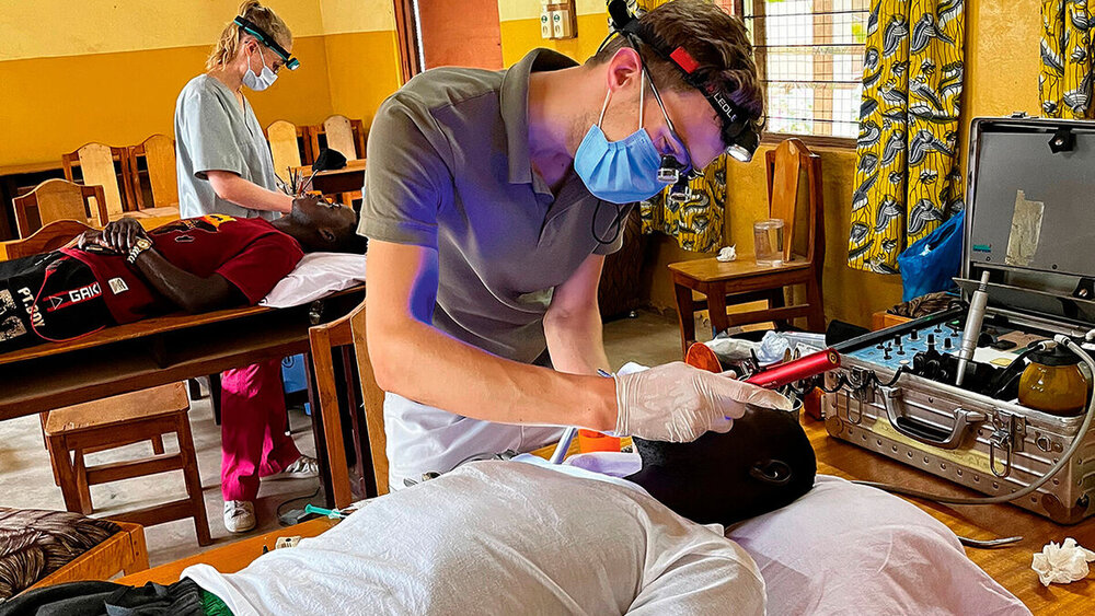 August 2022, fünf intensive Wochen in Ghana warten auf unser kleines Team. Schon lange hatten wir, eine bunte Truppe aus zwei approbierten Zahnärztinnen aus München und zwei Zahnmedizinstudenten aus Bonn und Münster, mit dem Gedanken gespielt, in einem Hilfsprojekt zahnärztliche Hilfe für Menschen ohne Zugang zu dieser Versorgung zu leisten. Nach der Kontaktaufnahme zum Verein „Dental Volunteers e. V.“ entschieden wir uns für das Land im Herzen Westafrikas. Trotz einer aufstrebenden Wirtschaft ist Ghana nach wie vor – besonders in den nördlichen Regionen – stark von Armut betroffen. Der Verein hat dort eine dentale Grundausrüstung deponiert, die wir mit vielen weiteren Spenden von verschiedenen Dentalfirmen und Apotheken ausbauen und auf den neuesten Stand bringen wollten.