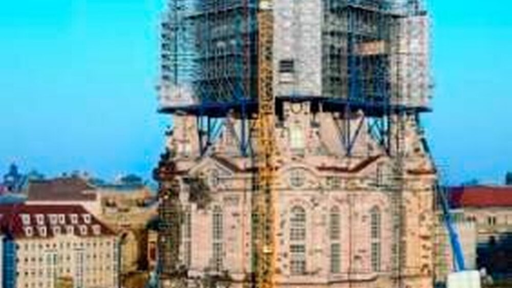 Die Verzögerungen durch Hochwasser und Streik waren Anfang Oktober aufgeholt, man ist weitgehend im Plan. Im nächsten Frühjahr soll die Kuppel schon fertig sein, anschließend wird die Laterne aufgemauert und 2004 das von den englischen Freunden Dresdens gestiftete goldene Turmkreuz aufgesetzt. Die Spitze des Kreuzes stellt dann den höchsten Punkt der Kirche dar – 92,8 Meter!