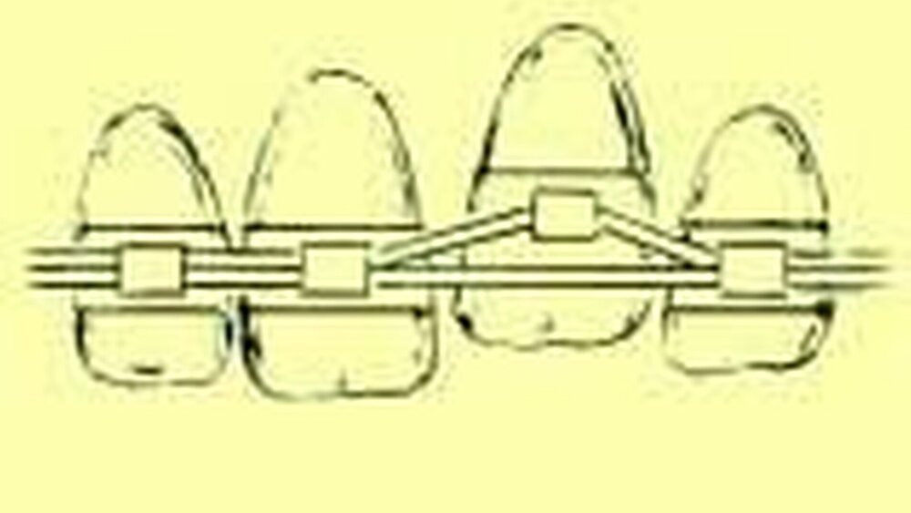 Etwas einfacher war die ligaturenlose Apparatur von Case 1916. Er benutzte einen hochelastischen Edelmetalldraht, den er durch Ösen führte, die an den Bändern befestigt waren. Hierin kann der Vorläufer der etwa fünfzig Jahre später folgenden Begg-Technik gesehen werden [Hotz 1972].