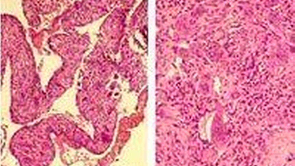 Die aneurysmatische Knochenzyste ist eine seltene, in ihrer Ätiologie bisher nicht abschließend geklärte, grundsätzlich aber gutartige Knochenläsion. Das oft über lange Zeit symptomlose und damit häufig unbemerkte Wachstum kann, wie im vorliegenden Fall, zu ausgedehnten Knochendefekten führen. Dabei ist die Wachstumsdynamik sehr variabel und im Einzelfall nicht vorhersagbar. Neuere tumorzytogenetische Untersuchungen zeigen bei einigen Fällen strukturelle chromosomale Aberrationen der Chromosomen 16 und 17, insgesamt scheint die morphologische definierte Entität „aneurysmatische Knochenzyste" auf zytogenetischer Ebene aber keine einheitliche Läsion darzustellen [Werner and Delling, 2002]. Histologisch (Abb. 5) stellt sich ein recht inhomogenes Bild mit einem variablen Verhältnis solider und lakunärer Anteile dar. Den blutgefüllten Hohlräumen fehlt charakteristischerweise eine endotheliale Auskleidung. In den bindegewebigen Septen finden sich teilweise gruppiert zahlreiche mehrkernige Riesenzellen. Die abschließende histologische Bewertung erfordert umfangreiches Biopsiematerial, da in Teilbereichen der Läsion solide, riesenzellgranulomartige oder auch sehr mitosereiche Formationen Fehlinterpretationen verursachen können.