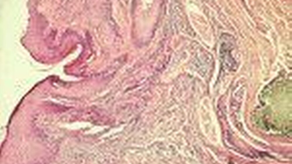 Der aktuelle Fall zeigt die seltene Kombination eines komplexen Odontoms mit einer chronisch granulierenden Entzündung mit extraoraler Fistelbildung. Das hier präsentierte komplexe Odontom ist ein gutartiger odontogener Tumor, der in jedem Lebensalter auftreten kann. 84 Prozent treten vor dem 30. Lebensjahr auf und das männliche Geschlecht ist etwas häufiger betroffen als das weibliche (1,5:1) [Reichart und Philipsen, 1999]. Die hier vorliegende Lokalisation des Odontoms im posterioren Unterkiefer ist typisch. Ein komplexes Odontom wächst in der Regel langsam und schmerzlos und wird häufig nur zufällig entdeckt. Im vorliegenden Fall führte erst die Entzündungssymptomatik zur richtigen Diagnose, wobei die Ursache für die Fistelbildung lange nicht erkannt wurde. Die typische Ursache einer chronisch granulierenden Entzündung mit extraoraler oder enoraler Fistelbildung im Kieferbereich ist ein pulpentoter Zahn mit fortgeleiteter periapikaler Entzündung [Partsch et al., 1924; Stoll et al., 1963, Torabinejad und Kiger, 1980]. Auch bei dieser Erkrankung wird die dentogene Ursache häufig erst sehr spät erkannt und die Hautsymptome häufig lange erfolglos behandelt [Sack et al., 1992; Buch et al., 2003].