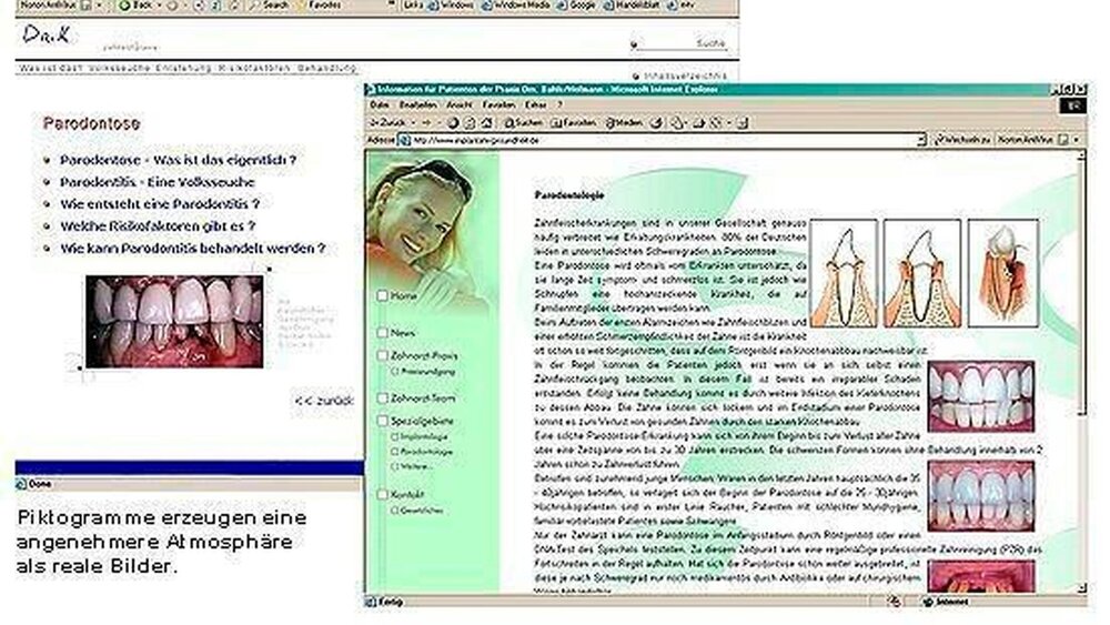 Das Internet schafft die Möglichkeit, Informationen durch Texte, aber auch durch Bilder und Grafiken zu vermitteln. Bilder können aber noch mehr – sie können auch Emotionen transportieren. Bilder können eine Seite sympathisch und angenehm erscheinen lassen, aber durchaus auch abschrecken. So mögen Fotos von kariösen Zähnen oder Parodontose dem Fachmann interessant erscheinen, beim Patienten erzeugen sie ein eher unangenehmes, beängstigendes Gefühl.