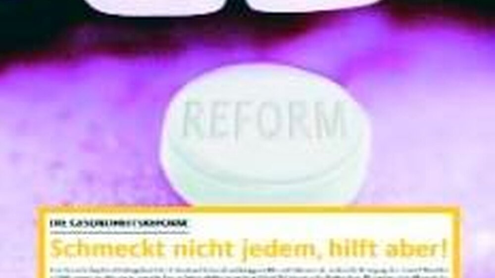 Ulla Schmidt hatte bereits die Leser in der Bild-Zeitung beruhigt. Aber es kam noch eine weitere Aktion hinzu, vielleicht sogar als zusätzliche Beruhigungspille. Vor kurzem startete die Werbekampagne für die Gesundheitsreform. Auf zwei vierfarbigen Seiten ist ein riesiger geöffneter Mund mit einer Pille auf der Zunge zu sehen, darin ein recht kleiner Kasten mit Text. Darin werden auf drei Zeilen mehr Effektivität, mehr Transparenz, mehr Wettbewerb und mehr Qualität versprochen. Und dass jeder unabhängig von Alter und Einkommen die medizinische Versorgung bekommt, die er braucht. Und überhaupt: „Dass jeder Euro im System effektiv eingesetzt wird.“