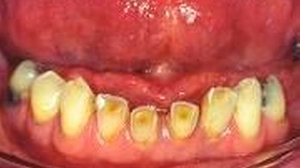 Eine alarmierende Form der erosiven Zahnhartsubstanzabtragung ist durch den gleichzeitigen Genuss von häufigen säurehaltigen Getränken und dem anschließenden Vorgang des lang dauernden Kaugummikauens gegeben. Die Zähne des jungen Mannes auf Abbildung 7 zeigen massiven ersosiv- bedingten Zahnverlust auf allen Kauflächen des Kiefers. Der 22-jährige sehr modebewusste und sehr schlanke Patient hat nach eigenen Angaben über mindestens fünf bis sechs Jahre mehrfach täglich Softdrinks (unter anderem diverse „light“-Getränke, Apfelsaftschorle) zu sich genommen und anschließend stets lange Kaugummi gekaut.