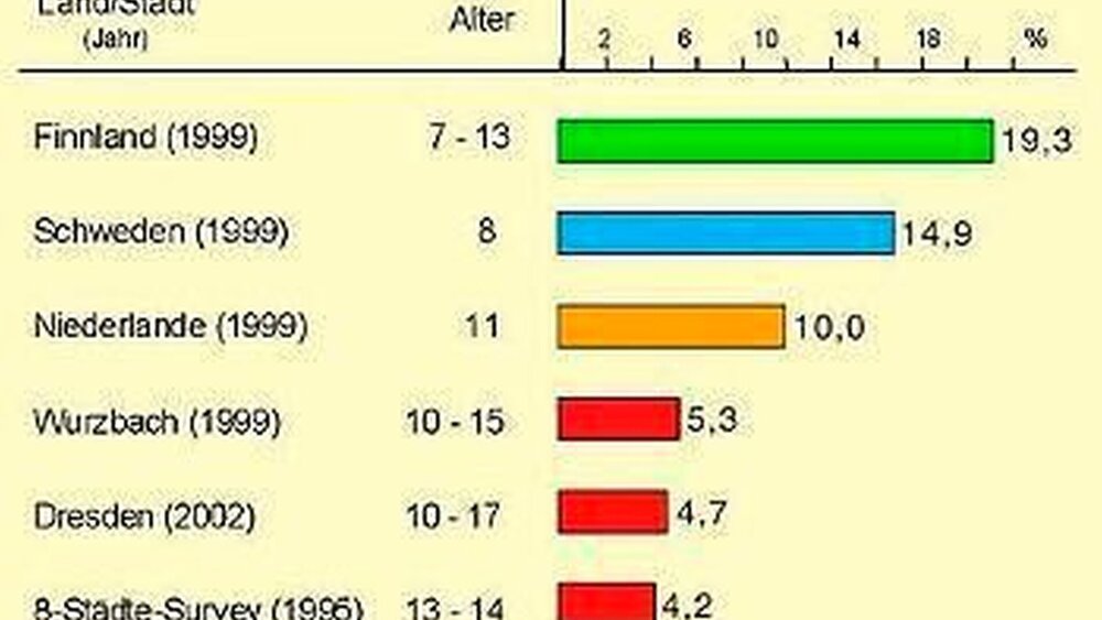 Aus Finnland, den Niederlanden sowie Schweden berichtete man in jüngerer Zeit über das häufigere Auftreten entwicklungsbedingter Schmelzstrukturstörungen an den bleibenden ersten Molaren (Zehn bis 19 Prozent), nicht selten in Kombination mit einem Schneidezahnbefall. Die Ursachen für diese „Molaren-Inzisiven-Hypomineralisation“ (MIH) werden vor allem in umweltbedingten Schadstoffeinflüssen, der Brusternährung (Milchdioxin) sowie in respiratorischen und hoch fiebrigen Erkrankungen gesehen. Anliegen der Publikation ist ein Vergleich der dokumentierten MIH-Häufigkeiten mit den aus Deutschland vorliegenden Ergebnissen länger oder kürzer zurückliegender Erhebungen. In allen Untersuchungsorten bewegte sich der Anteil der Kinder (Zehn- bis 17-Jährige) mit hypomineralisierten ersten Molaren zwischen vier und sechs Prozent. Die Voraussetzung für das niedrige Niveau des MIH-Befalls wird in den seit den frühen fünfziger Jahren zur Rachitisprävention verschriebenen und verwandten Vitamin-D-Supplementen gesehen. 1991 haben die Pädiater 222 Millionen DDD Vitamin-D3-Präparate verordnet, zumeist als Kombination mit Natriumfluorid (0,25 mg F/die). Zehn Jahre später erhielten mehr oder weniger eine Million Kinder über ihr erstes Lebensjahr hinaus Vitamin-D-Supplemente (333 Millionen DDD).