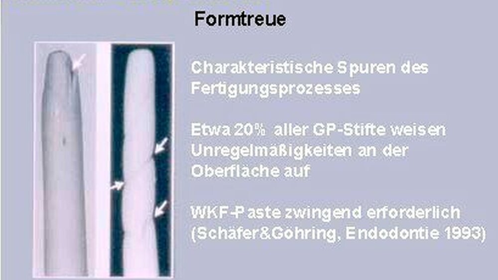 Insgesamt erfüllen Guttaperchastifte in einem hohen Maß die Anforderung, die unter den Aspekten Gewebeverträglichkeit, Abdichtungsverhalten, Handhabung und gegebenenfalls notwendige Entfernbarkeit an Wurzelkanalfüllstifte zu stellen sind [Guldener und Langeland 1982].
