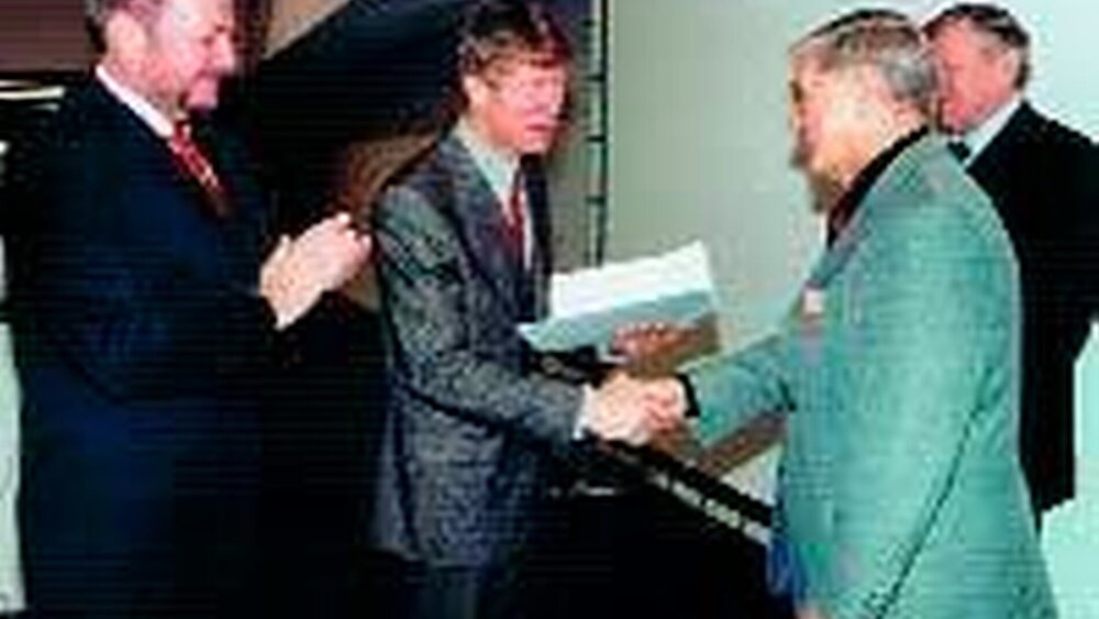 Der brandenburgische Zahnärztetag war gleichzeitig Anlass für eine ganz besondere Ehrung zweier brandenburgischer Zahnärzte. Für die BZÄK verlieh Dr. Oesterreich an Dozent Dr. Dieter Tiede sowie an SR Dr. Karl-Heinz Weßlau die Ehrennadel der deutschen Zahnärzteschaft. Beide Zahnärzte errangen nicht nur durch fachliche Qualifikation einen hohen Namen in der Kollegenschaft, sondern setzten sich auch mit sehr viel Engagement für den Aufbau der zahnärztlichen Körperschaften sofort nach der Wende ein. Sie gehören zu den Gründungsmitgliedern von Kammer und KZV.