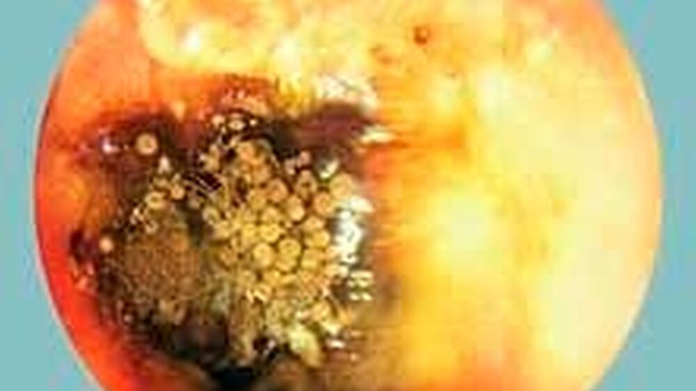 Feuchte grau-bräunliche Myzelmatten führen zu einer Mazerierung der Epidermis, die Gehörgangshaut erscheint verschwollen (Abb. 16).