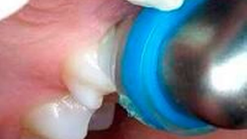 Eigene klinische Untersuchungen zeigen auch erste positive Ergebnisse. Als unbehandelbar eingestufte Kinder mit mindestens zwei offenen kariösen Läsionen wurden mit Ozon (HealOzone, KaVo, Biberach) behandelt. Vorher wurde ein klinischer Index erhoben und der Diagnodent-Wert vor und nach der Ozonbehandlung gemessen. Das Ozon wurde direkt auf die kariösen Läsionen (Abb. 5) appliziert, die Kontrollläsionen wurden unbehandelt belassen. Weiches Dentin der Testzähne wurde in zwei Drittel der Fälle härter, in einem Drittel der Fälle blieb es unverändert. Die Kontrollgruppe dagegen zeigte, dass es bei einem Drittel der Läsionen zur Besserung kam, bei einem Drittel zur Verschlechterung, und ein Drittel der Läsionen unverändert blieb. Zusätzliche Fluoridierungsmaßnahmen wurden bei den Kindern nicht angestrengt. Als wichtigste Beobachtung ist festzustellen, dass die schmerzfreie Kariesbehandlung in 65 Prozent der Fälle zu einem Angstabbau führten, so dass alle Kinder stress- und angstfrei zur nächsten Behandlung gekommen sind [Dähnhardt et al. 2003]. Schädliche Nebeneffekte wurden nicht beobachtet und alle Eltern sind mit der Behandlung Ihrer Kinder sehr zufrieden. Sie würden gegebenenfalls ihre Kinder wieder mit Ozon behandeln lassen und fast alle Eltern würden auch keine höheren Kosten scheuen. Viele Kinder wurden mit der Ozonbehandlung von einer risikobehafteten Prämedikation oder gar einer Vollnarkose bewahrt. Nach einigen Sitzungen konnten auch Zähne versorgt werden, die dem Ozon nicht zugänglich waren.