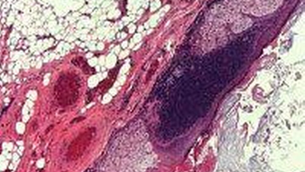 Dermoidzysten sind seltene, entwicklungsbedingte Malformationen, die heute überwiegend als eine benigne, zystische Abortivform eines Teratoms aufgefasst werden [Neville et al., 2002]. Im Kiefer-Gesichtsbereich entstehen diese Läsionen bevorzugt in der Mittellinie und betreffen den vorderen Mundboden und die Zunge [King et al., 1994; Mahmood and Moody, 2003]. Lediglich in Einzelfällen wird über eine Beteiligung des Unterkiefers [Komiyama et al., 2002] oder ein Auftreten in der seitlichen Halsregion berichtet [Rosen et al., 1998]. Histologisch (Abb. 6) findet sich bei diesen Zysten eine plattenepitheliale Auskleidung mit deutlich keratinisierter Oberfläche, deren Hornschuppen zusammen mit Talg das Zystenlumen füllen. In der Wandung der Zyste finden sich Derivate von Hautanhangsgebilden, die in Abbildung 6 insbesondere in Form von Talgdrüsen erkennbar werden. Eine maligne Transformation ist ausgesprochen selten, es finden sich in der Literatur aber Fallmitteilungen über eine Entstehung von Karzinomen auf der Basis primär benigner Dermoidzysten. Solche Befunde sollten daher grundsätzlich operativ entfernt werden.