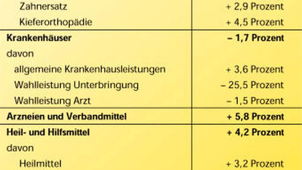 Für Versicherungsleistungen bezahlten die PKV-Unternehmen insgesamt über 15,3 Milliarden Euro, etwa 600 Millionen Euro mehr als 2002. Das entspricht einem Anstieg von 4,1 Prozent. Bestandsbereinigt, also ohne den Effekt der höheren Versichertenzahl zu berücksichtigen, kletterten die Ausgaben für Krankheitskosten mit 1,3 Prozent eher moderat. Überproportional stiegen dagegen die Ausgaben für Arzneien und Verbandsmittel (5,8 Prozent) sowie für Heil- und Hilfsmittel (4,2 Prozent).