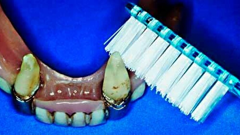 Das Staunen des Zahnarztes schreckte die Patientin aber nicht: Sie wollte ihren Zahnersatz behalten. Zum Reinigen putzte sie die alten Zahnwurzeln fleißig, die Alveolen waren entzündungsfrei.... was sprach noch dagegen???