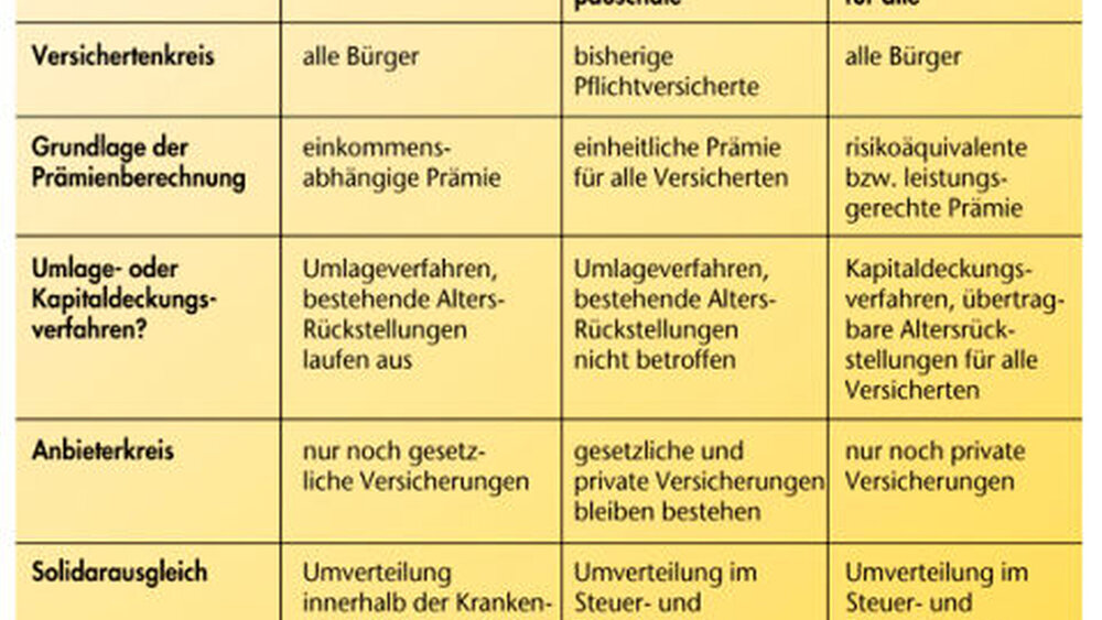 Die “Privatversicherung für alle” im Vergleich mit Bürgerversicherung und Gesundheitspauschale