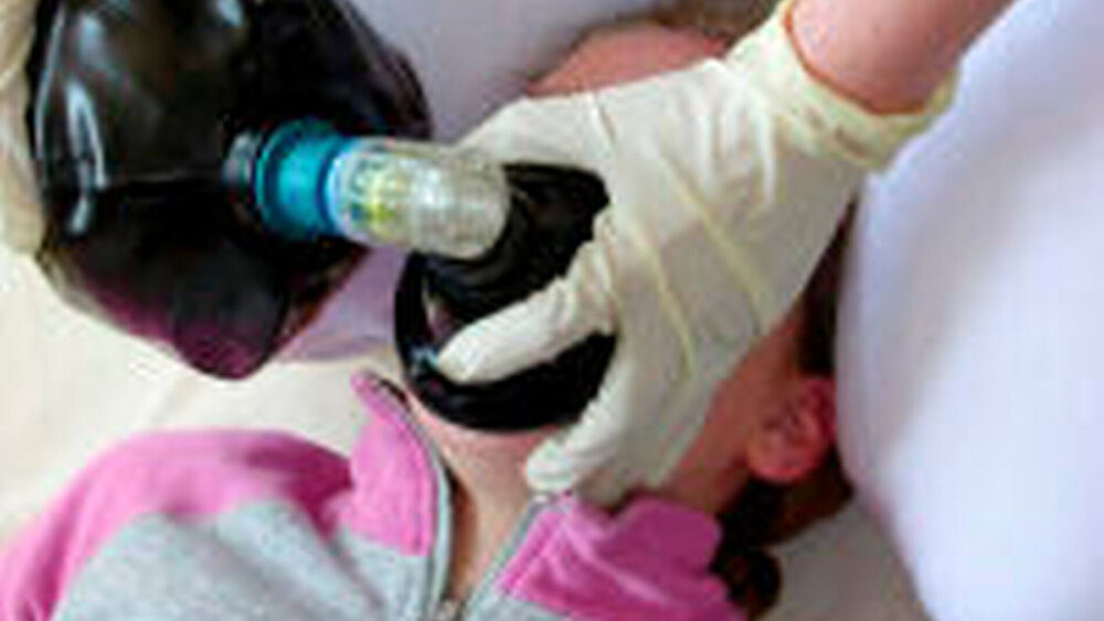 Therapie:Die ersten Maßnahmen bestehen im Abbruch der Behandlung, Zuwendung und Beruhigung, gegebenenfalls Atemkommandos, Rückatmungssysteme (Einsatz von Kunststoffbeutel).