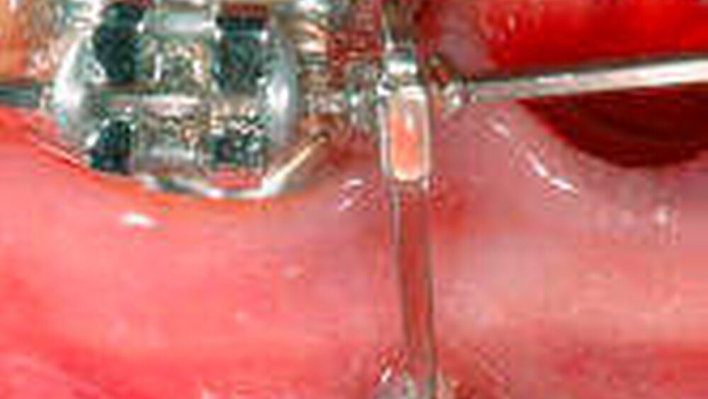Neben der Verbesserung der Materialeigenschaften und der klinischen Forschung zur Gewebereaktion galt in den letzten Jahren die verstärkte Aufmerksamkeit der Verankerung mit speziellen Implantaten und Minischrauben im Knochen, um damit unabhängig von der Patientenmitarbeit zu sein. Unter Verankerung sind alle jene Maßnahmen zu verstehen, welche eine geradlinige körperliche Bewegung eines Zahnes oder von Zahngruppen an ihren Bestimmungsort unterstützen und gleichzeitig die Mitbewegung von Zähnen, welche nicht bewegt werden sollen, verhindern. Dem Risiko von Wurzelresorptionen sowie unerwünschten reaktiven Zahnrotationen und Kippungen, die zu Okklusionsstörungen Anlass geben, kann damit vorgebeugt werden. Dafür wurden bislang mehrere Zähne zu Verankerungsblöcken intra- und intermaxillär zusammengefasst, oder mit dem Headgear die ersten Molaren am Ort gehalten. Dennoch kam es entweder durch fehlende Stabilität der Blockbildung oder fehlende Mitarbeit des Patienten beim Tragen des Headgear zum Verankerungsverlust. Um die parodontale Mitreaktion der Verankerungszähne und die Patientenmitarbeit zu umgehen, wurde das Ankylosierungsprinzip des dentalen Implantates genutzt. Im Oberkiefer wird dafür ein spezielles Gaumenimplantat mit einer Länge von 4,0 Millimeter und einem Durchmesser von 3,5 Millimeter in oder neben der Gaumennaht inseriert. Von diesem aus werden mit einem starren Transpalatinalbogen Prämolaren oder Molaren fixiert, um beispielsweise nach einer systematischen Prämolarenextraktion zielgerichtet die Restlücken, auch asymmetrisch, zu schließen oder die Molaren zum Platzgewinn beim Zahnengstand zu distalisieren (Abbildung 2). Neben dem Gaumenimplantat werden zur isolierten Bewegung einzelner Zähne oder Zahngruppen kortikal verankerte Minischrauben angewandt. Durch ihren Einsatz ist es zum Beispiel möglich geworden, bei Aplasie der zweiten Prämolaren im Unterkiefer die Molaren zu mesialisieren, ohne die Schneidezähne nach lingual zu kippen (Abbildung 3).
