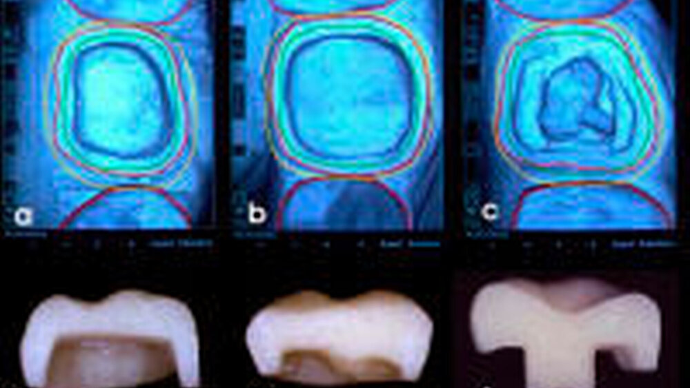 Um den Einfluss des Präparationsdesigns auf die Haltbarkeit von gerüstfreien Vollkeramikronen zu prüfen, wurden drei Präparationstypen definiert: Die klassische Präparation mit 3 Millimetern (mm) Stumpfhöhe erhielt eine Schulter mit 1,0 bis 1,2 mm. Unter 3 mm Stumpfhöhe wurde die Krone als „reduziert“ definiert. Eine Endopräparation wurde gewählt bei endodontisch behandelten Zähnen.