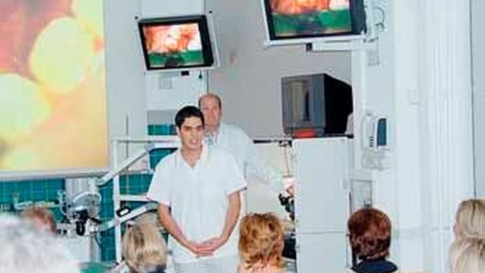 Nach der Theorie ging es dann in die Praxis: Live aus dem OP zugeschaltet, führte Al- Machot bei einer Parodontitis-Patientin einen chirurgischen Eingriff durch.