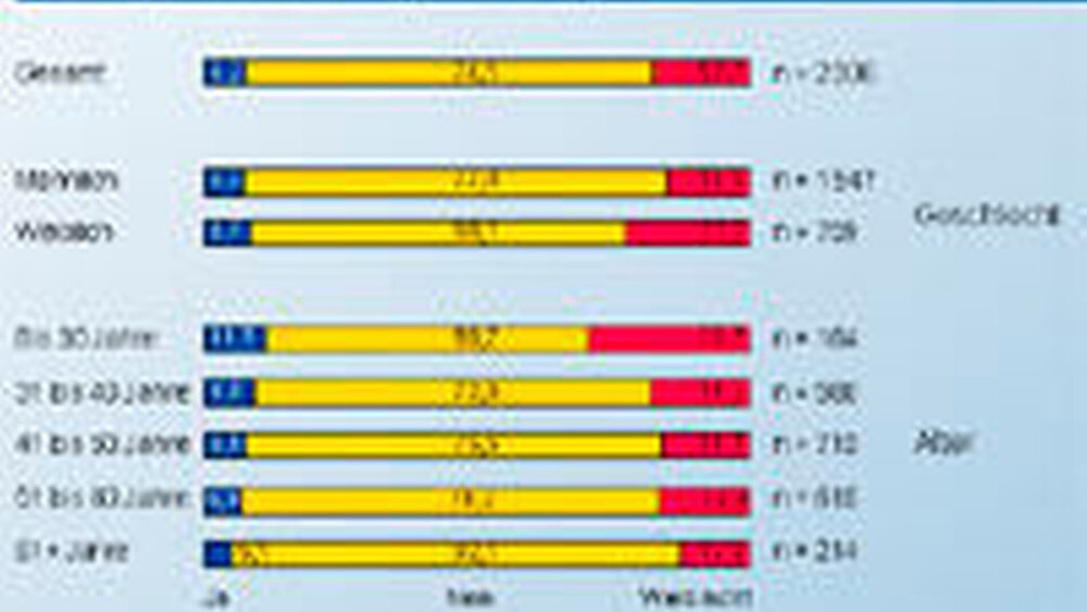 Auch hier zeigen sich wieder geschlechtsspezifische Unterschiede. Frauen stehen einer angestellten Tätigkeit in einem MVZ fast doppelt so häufig positiv gegenüber wie Männer, wissen aber auch annähernd doppelt so oft (noch) nicht, wie sie diese Frage beantworten sollen. Hinsichtlich des Alters zeigt sich ebenfalls eine Zweiteilung: Im Vergleich zu älteren Zahnärzten können sich jüngere Kollegen die Mitarbeit in einem MVZ viel häufiger vorstellen beziehungsweise haben zu dieser Frage deutlich öfter (noch) keine feste Meinung.