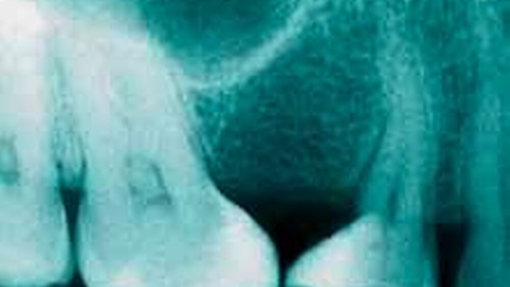 Alle Zähne reagierten im Kältetest (Kohlensäure-Schnee) positiv. Es fanden sich keine Farbveränderungen, Lockerungen oder Perkussionsempfindlichkeiten, die auf eine endodontische Erkrankung hätten hindeuten können. Auch die Weichteile waren frei von Rötungen, Schwellungen oder Fistelbildungen.