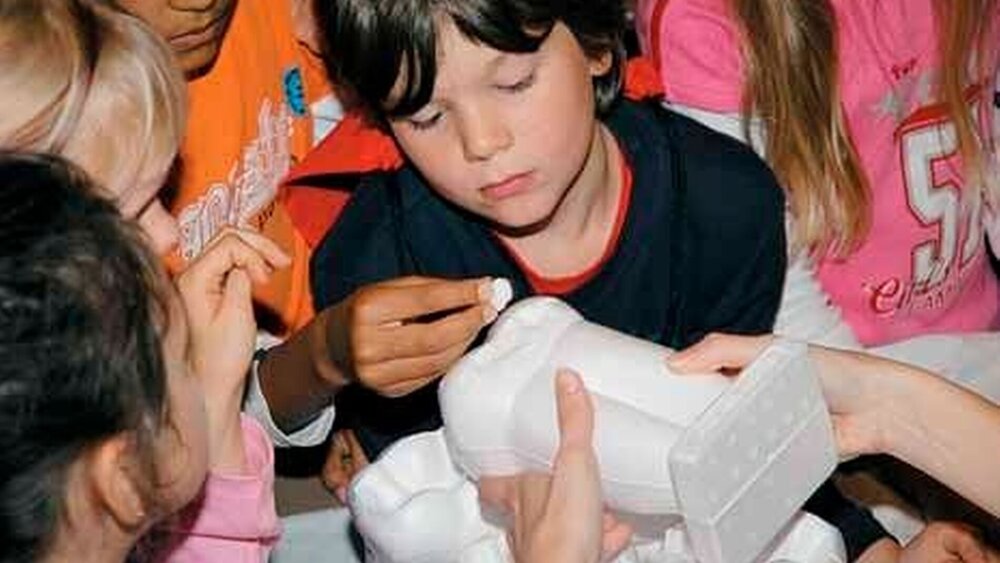 So können sich die Grundschüler Zahnputzwissen aneignen, auf dem Getreidefahrrad Körner mahlen und im Müslilabor zugesetzten Zucker analysieren. Außerdem können die Jungen und Mädchen beobachten, wie der Zahnarzt am Modellgebiss die Zähne fluoridiert, und sich auf dem Zahnarztstuhl austoben.