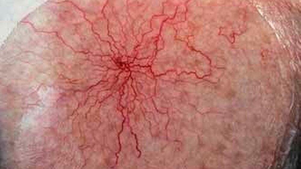 Spider naevi, die ihren Namen ihrem charakteristischen, spinnenartigen Aussehen verdanken, sind meist vor allem am Kopf, im Hals- und Brustbereich sowie an den Armen zu finden. Sie bestehen aus einer Zentralarterie, die als roter Fleck zu erkennen ist und kleinen sternchenförmig angeordneten Venen, die sich durch Druck völlig ausstreichen lassen.
