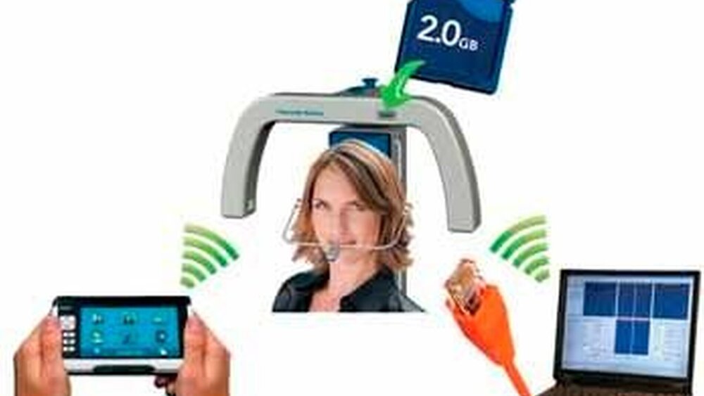 Für den Bereich der instrumentellen Bewegungsaufzeichnung stellte dabei Dr. Rolf Klett, Höchberg bei Würzburg, ein neues Registriersystem für die Kiefergelenk- und Funktionsdiagnostik vor (Freecorder‚ Blue- Fox, Fa. Dentron). Grundlage dieses Registrierverfahrens ist ein optisches Messverfahren zur automatischen Erkennung und Verfolgung graphischer Muster, die an einem entsprechenden Registrierbogen am Unterkiefer angebracht werden. Diese kodierten Muster werden mit digitalen Videokameras, die sich in einem über dem Patienten schwebenden C-Bogen befinden, dreidimensional abgebildet und ausgewertet. Hierfür erforderlich ist allerdings ein spezieller Untersuchungsplatz, etwa wie bei einem Panoramaröntgengerät, nur etwas kleiner.