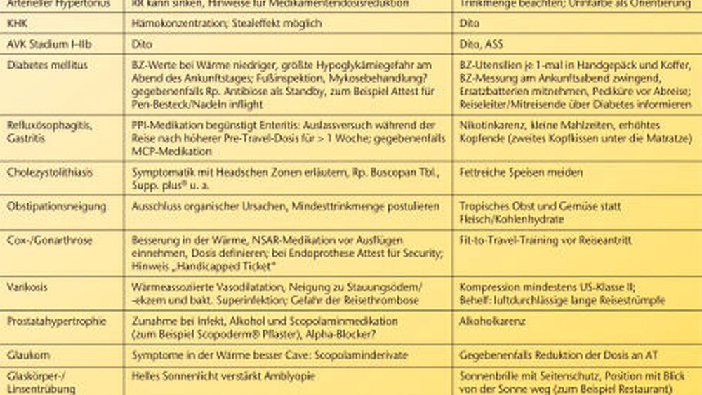 Nachfolgend sind die wichtigsten reisemedizinisch relevanten Veränderungen mit entsprechenden Empfehlungen aufgeführt: