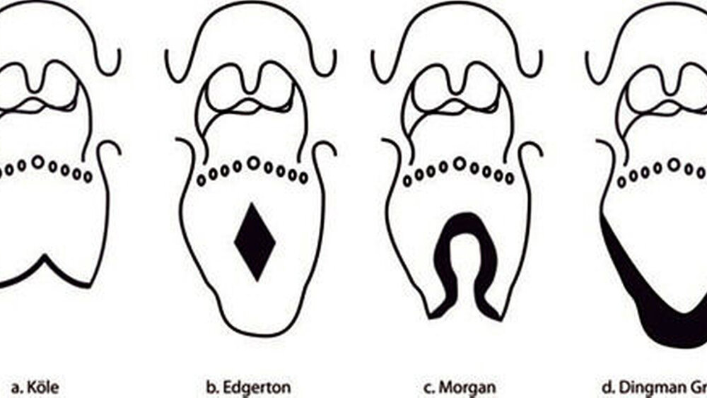 Die symptomatische Therapie einer echten Makroglossie besteht in der operativen Reduktion der Zunge. Sie sollte nur bei ausgeprägten Befunden durchgeführt werden, wenn eine kausale Therapie nicht möglich oder nicht erfolgreich ist. Über Indikationen und Techniken der Zungenreduktionsplastiken gibt es zahlreiche Publikationen [Becker, 1962; Gasparini et al., 2002; Tomlinson et al., 2007; Wang et al., 2003; Wolford et al., 1996]. Oft wurden Patienten mit Down-Syndrom oder Beckwith-Wiedemann-Syndrom behandelt. Die Fallzahlen waren mit drei bis 22 Patienten eher gering. Es werden unterschiedliche Operationsmethoden verwendet (Abbildung 2). Hierzu zählen die apikale Keilexzision [Köle, 1965], Resektionen zentraler Zungenanteile [Edgerton, 1950], Kombinationstechniken, wie die „Schlüssellochexzision“ [Morgan et al., 1996], oder laterale Resektionen [Dingman und Grabb, 1961]. Die gebräuchlichste Methode ist die Exzision in Schlüssellochform. Anschließend wird der Defekt durch mehrschichtige Naht primär verschlossen. Zu den Risiken und Nebenwirkungen einer Zungenreduktionsplastik gehören starke Blutungen, Atemnot durch postoperative Schwellung, Hyp- oder Parästhesien durch Verletzung des Nervus lingualis, Geschmacksstörungen, Einschränkungen der Zungenbeweglichkeit durch Verletzung des Nervus hypoglossus oder Narben, Speichelgangverletzungen, Artikulations- und Kaustörungen. Meist ist der Therapieerfolg jedoch gut und die Komplikationsrate gering. Unsere Patientin wünschte trotz deutlicher Beeinträchtigung derzeit keine Zungenreduktionsplastik. Wir vereinbarten einen Wiedervorstellungstermin zur Befundkontrolle nach Therapie der Akromegalie oder bei zunehmenden Beschwerden.