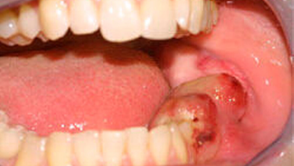 Eine 32-jährige Patientin stellte sich mit einer Blutung aus einer marginalen Gewebevermehrung am Gaumen vor. Es bestand eine Schwangerschaft im neunten Monat. Bei der klinischen Untersuchung zeigte sich eine zirka 0,7 cm große, weiche, stark vaskularisierte Raumforderung, die adhärent zum Parodont in Regio 16 war (Abbildung 1). Der Tumor war weich, livide und unter Spateldruck partiell exprimierbar. Innerhalb weniger Tage änderte sich der Aspekt der Oberfläche. Die Läsion blasste merklich ab (Abbildung 2) und die Gefäße erschienen weniger prominent. Obwohl die Morphologie sehr typisch für eine Schwangerschaftsepulis war, fiel die Entscheidung zur Entfernung der Läsion vor dem Hintergrund der Blutungsanamnese und der Tatsache, dass zwei Wochen vor dem errechneten Geburtstermin bei zeitgerechter Kindesentwicklung keine wesentlichen Gefahren durch die Exzision zu erwarten waren. Das Gewebe wurde in Lokalanästhesie entfernt (Abbildung 3). Prä- und postoperativ wurde ein Cardiotokogramm zur Kontrolle der Schwangerschaft geschrieben.