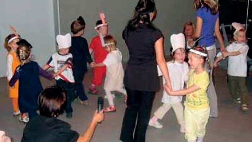 Beim Aktionsspiel ist Zähneputzen Programm: Mit Pappkronen gekennzeichnet, schlüpfen die Kleinen in die Rolle von Zahnbürsten, Bakterien und Zähnen. Papiertücher werden zu Zahnpasta. Die Kinder singen, tanzen, klatschen rhythmisch und fangen sich gegenseitig. Ein Erzieher moderiert.