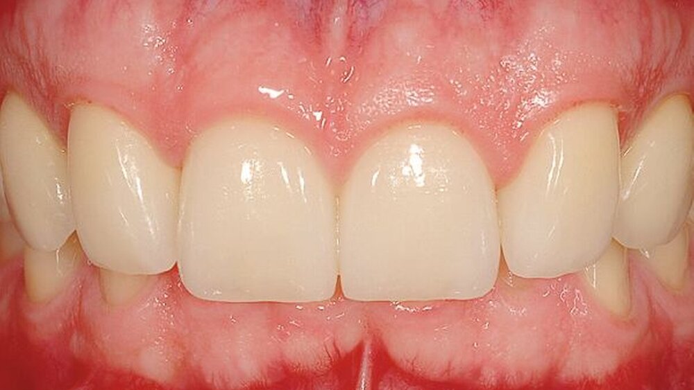 Der hier vorgestellte 33-jährige Patient stellte sich zur ästhetischen Korrektur nach mehrjähriger kieferorthopädischer Behandlung vor. Die Nichtanlage der lateralen Incisivi war durch mesialen kieferorthopädischen Lückenschluss kompensiert worden. Der schlechte Zustand der Milch-Canini regio 13 und 23 bedingte eine akute, definitive Behandlungsplanung. Nach ausführlicher Diskussion mit dem Patienten, dessen manifester Ablehnung einer erneuten kieferorthopädischen Behandlung und ausgesprochenem Wunsch nach einer ästhetischen Korrektur der ihm disharmonisch und unästhetisch erscheinenden Frontzahn - situation wurde eine implantatprothetische Lösung geplant. Nach ausführlicher Diagnostik im zahntechnischen Labor konnte eine sofortimplantologische Versorgung regio 13 und 23, sowie die Versorgung der Zähne 14,12–22 und 24 mit vollkeramischen Schalen geplant werden.