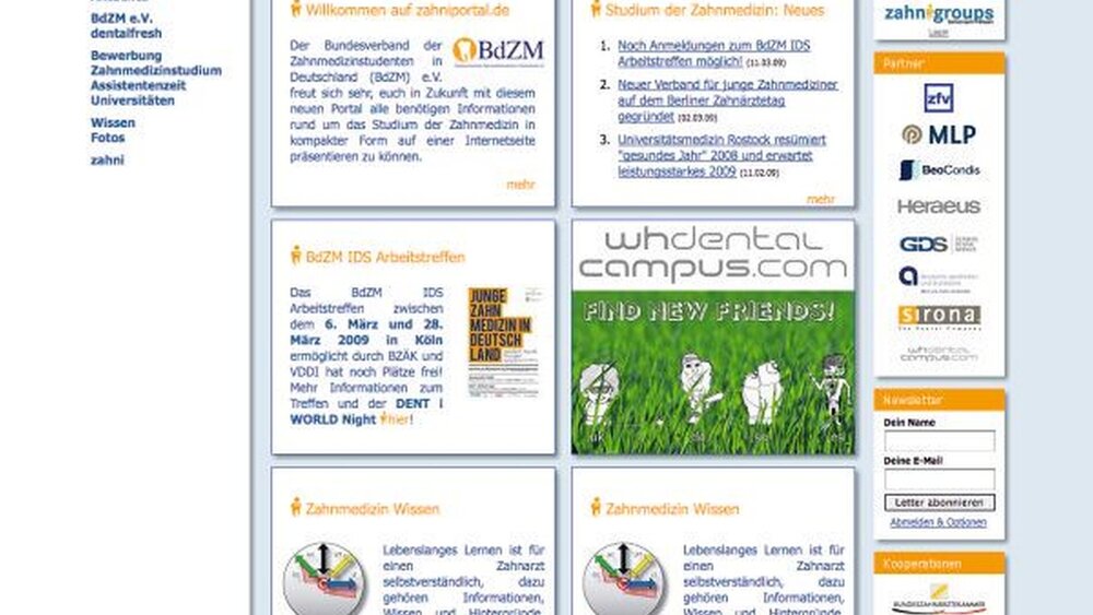 Seit Mai 2006 existiert das Informationsportal. Die ehemaligen Zahnmedizinstudierenden Jan-Philipp Schmidt, Art Timmermeister und Christian Rubbert entwickelten die Plattform gemeinsam. Derzeit finden Interessierte auf der Homepage Porträts der 30 Hochschulstandorte und aktuelle Mitteilungen des Verbandes und seiner Partner. Hinzu kommen Informationen zu Studienplatzsuche, Lehrinhalten und Assistenzzeit.