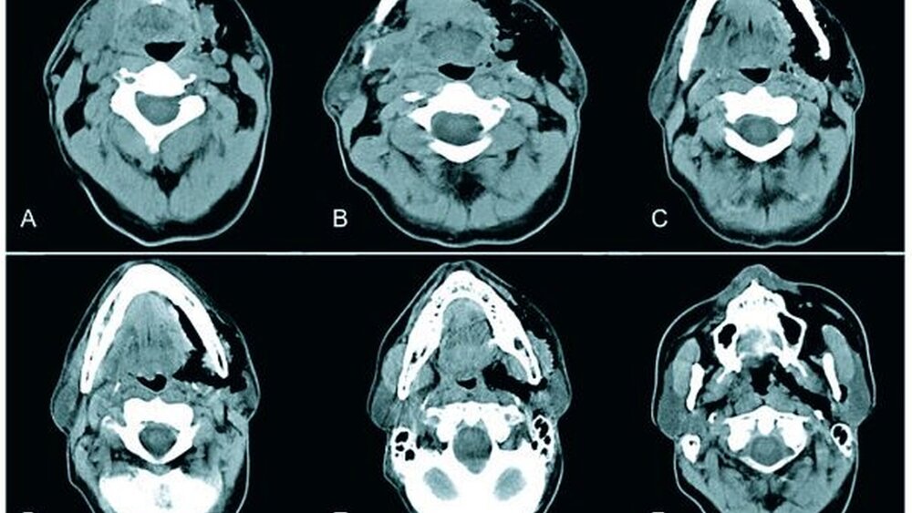 Ein 44-jähriger anamnestisch gesunder Patient stellte sich mit einer schmerzhaften, linksseitigen perimandibulären Schwellung vor. Bei der klinischen Untersuchung bestand bei Palpation ein Knistern unter der Haut. Der Patient beschrieb schwache, linksbetonte Schluckbeschwerden. Er war fieberfrei, und es bestand kein allgemeines Krankheitsgefühl.